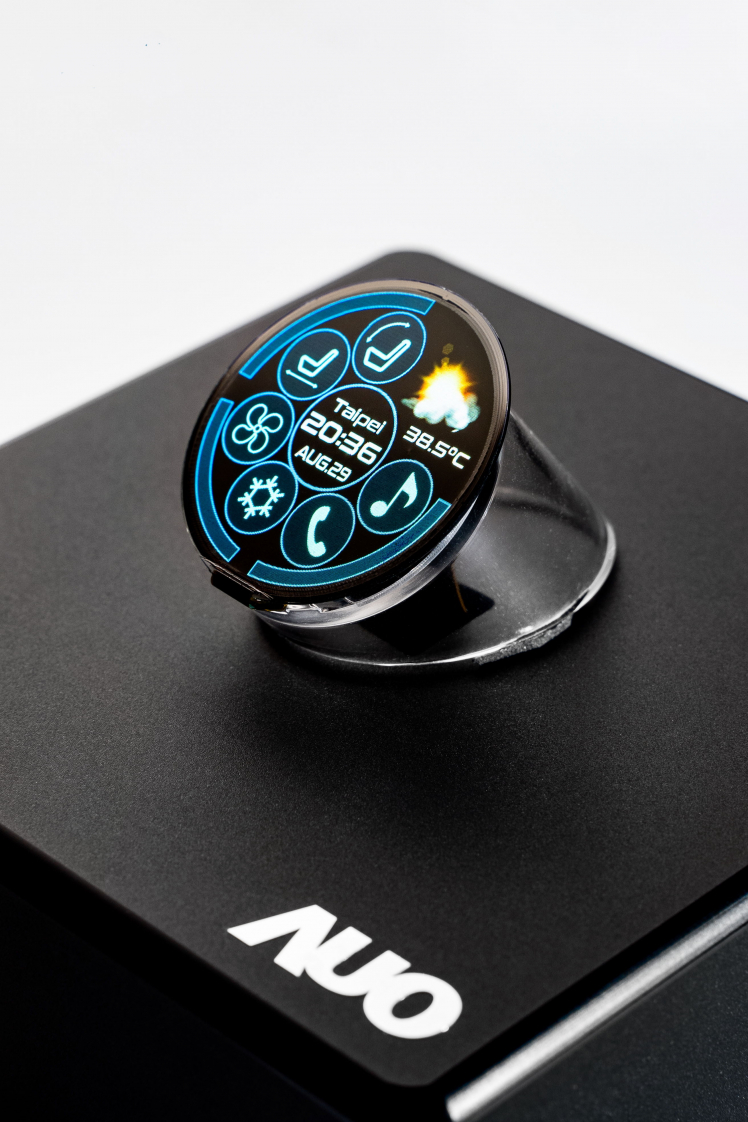 AUO’s 12.1-inch micro LED display with 169PPI is a monolithic micro LED display, which utilizes color conversion technology and features high weather resistance and stability. Along with high brightness LED, the display can clearly present traffic information to the driver even under bright sunlight to ensure safety. This model can be applied to automotive dashboards or central console displays. Last year, MILANTIYU released the world’s first and largest monolithic flexible Micro LED display(*), a 9.4-inch flexible micro LED display with 228PPI. Carrying RGB LED and possessing the highest resolution in the same class, this display provides a 120% NTSC and is presented as an S-shaped CID by assembling two panels with different inward and outward curvature. This year, MILANTIYU further partners with PlayNitride to demonstrate the 1.39-inch full circle micro LED display for the first time. Boasting the world’s highest pixel density of up to 338PPI(*), it can be used as the electronic knob for the central console. AUO’s unique free-form cutting technology provides tailored solutions for automotive manufacturers to develop various automotive dashboard designs for more intuitive operation as well as enhanced driving safety. The full circle micro LED display module can also be applied to wearable devices. Its 338 PPI pixel density, ultra-wide viewing angle and high brightness features are fit for wearable in all sorts of application scenarios, from static to movement, and from sunny to snowy day. Micro LED is able to display crystal-clear information and optimize users’ visual experience substantially.